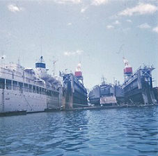 Enradiage sur l'Ouragan pour changer les paliers de la ligne d'arbre en septembre 1968